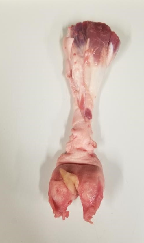 Complete limb containing femur, tibia, fibula, patella, hip/knee/ankle joints, musculature, tendons, and ligaments, or sectioned according to your needs. Used in joint replacement device validation, fracture fixation testing, limb biomechanics analysis, and surgical training.